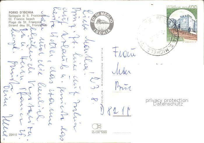 old postcard Forio d Ischia Sant Franziskus Strand postalisch gelaufen Erhaltung siehe scans