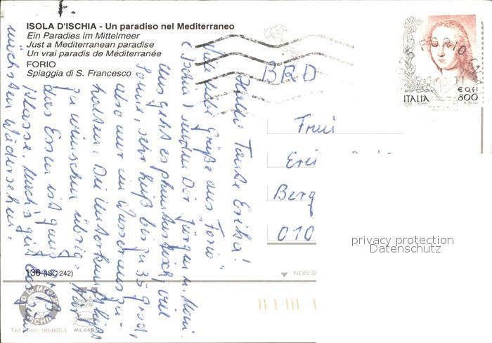 old postcard Forio d Ischia Spiaggia di San Francesco Strand Palmen postalisch gelaufen Erhaltung siehe scans