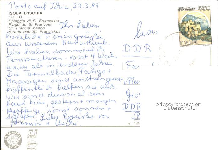 old postcard Forio d Ischia Spiaggia di San Francesco Strand postalisch gelaufen Erhaltung siehe scans