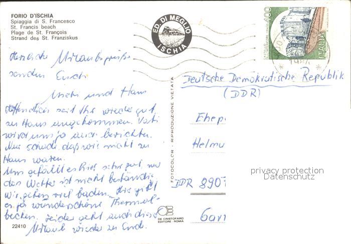 old postcard Forio d Ischia Strand des Sankt Franziskus postalisch gelaufen Erhaltung siehe scans