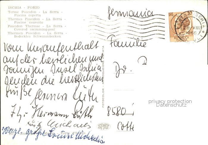 old postcard Forio d Ischia Terme Poseidon La Serra Piscina coperta postalisch gelaufen Erhaltung siehe scans