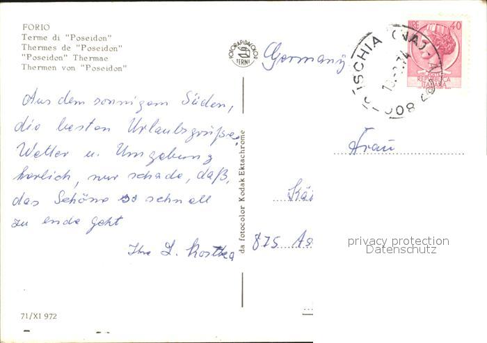 old postcard Forio d Ischia Thermen Poseidon postalisch gelaufen Erhaltung siehe scans
