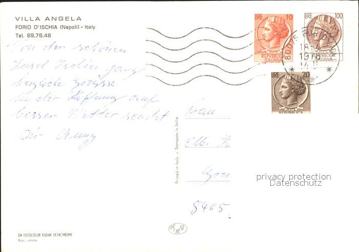old postcard Forio d Ischia Villa Angela postalisch gelaufen Erhaltung siehe scans