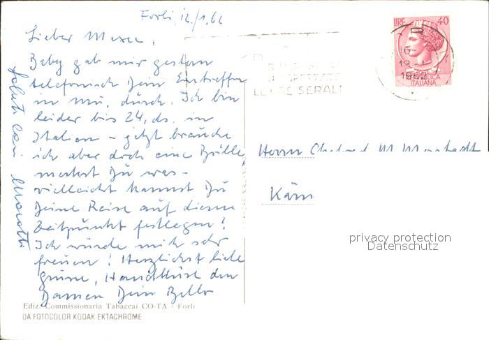 old postcard Forli Teilansichten Platz Brunnen Denkmal Saeule postalisch gelaufen Erhaltung siehe scans