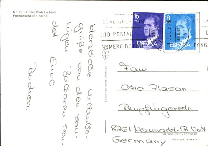 old postcard Formentera Hotel Club La Mola postalisch gelaufen