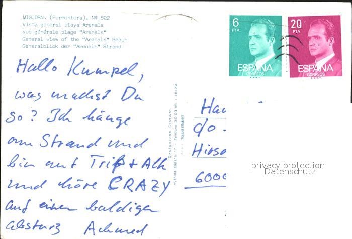 old postcard Formentera Migjorn Arenals Strand postalisch gelaufen Erhaltung siehe scans