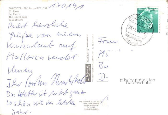 old postcard Formentor Leuchtturm postalisch gelaufen Erhaltung siehe scans
