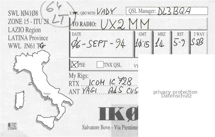 74091318 Formia Lazio IT Ikoxez 64 LT postalisch nicht gelaufen Erhaltung siehe scans [IrynaD87] KatCode: 11240