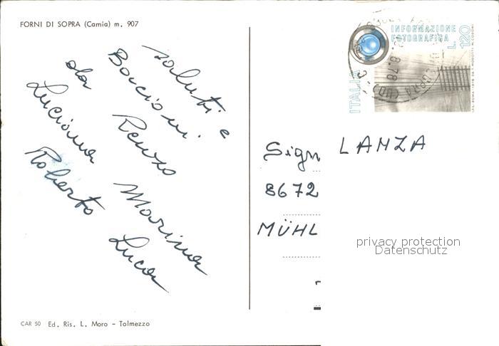 old postcard Forni di Sopra Hallenbad Enzian Dolomiten postalisch gelaufen Erhaltung siehe scans
