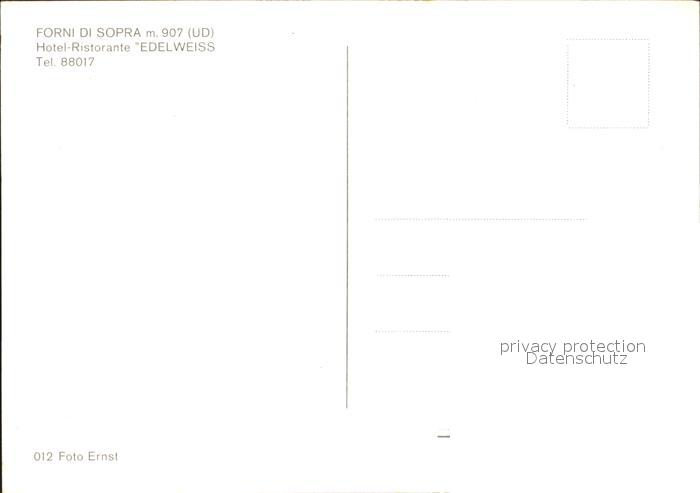 Forni di Sopra Hotel Ristorante Edelweiss postalisch nicht gelaufen Erhaltung siehe scans