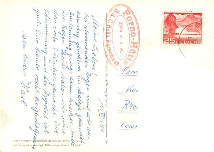 13909691 alte Postkarte Fornohuette 2574m Maloja GR Panorama postalisch gelaufen Erhaltung siehe scans [WerneD78] KatCode: 11470100335244
