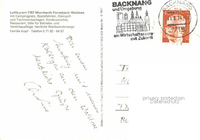 72720796 alte Postkarte Fornsbach Minigolf Tischtennis Mini-Eisenbahn Restaurant-Waldsee postalisch gelaufen Erhaltung siehe scans [LiesaD40] KatCode: 11110008119044