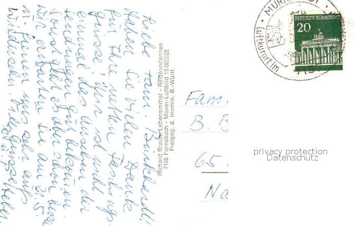 73072323 alte Postkarte Fornsbach mit Waldsee Fliegeraufnahme postalisch gelaufen Erhaltung siehe scans [WerneD78] KatCode: 11110008119044