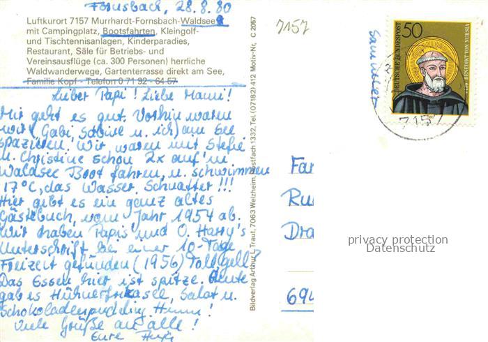 74052874 alte Postkarte Fornsbach Murrhardt Campingplatz Bootspartien postalisch gelaufen Erhaltung siehe scans [WerneD78] KatCode: 11110008119044