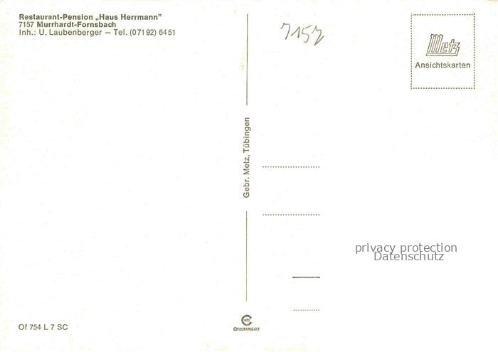 74053307 Fornsbach Murrhardt Haus Herrmann Gastraeume postalisch nicht gelaufen Erhaltung siehe scans [WerneD78] KatCode: 11110008119044