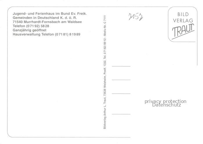 74053067 Fornsbach Murrhardt Jugendhaus der Ev Freikirch Gemeinden postalisch nicht gelaufen Erhaltung siehe scans [WerneD78] KatCode: 11110008119044