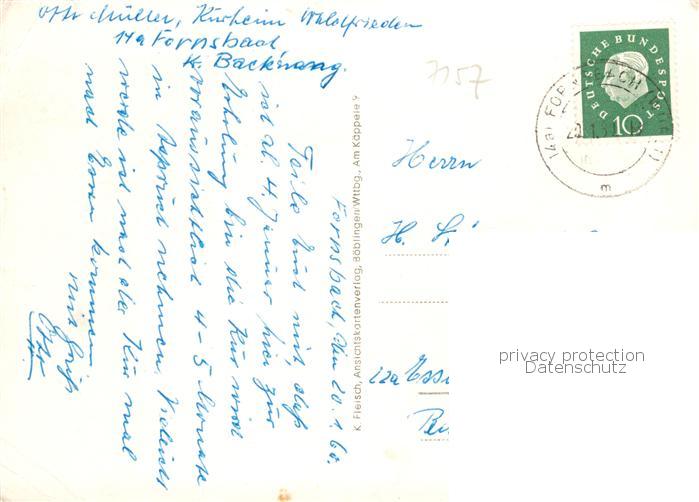 73866733 alte Postkarte Fornsbach Murrhardt Partie am Waldsee Kirche Dorfpartie Dorfansicht Dorfstrasse postalisch gelaufen Erhaltung siehe scans [WerneD78] KatCode: 11110008119044