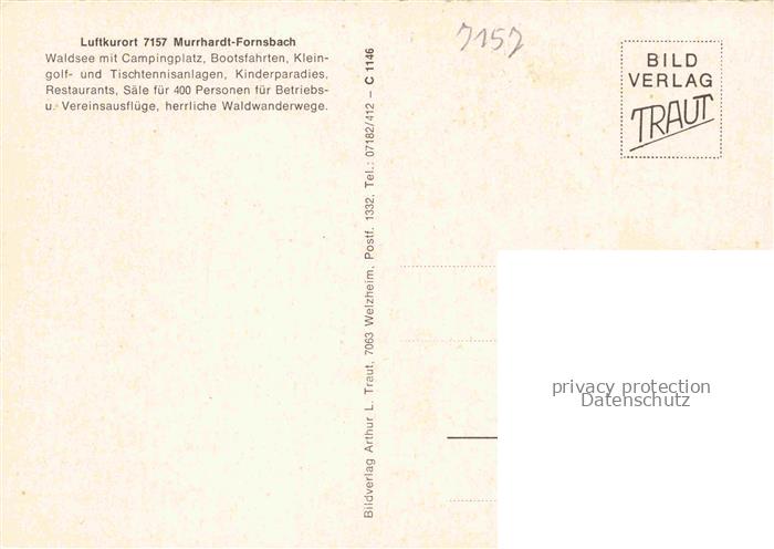 74053231 Fornsbach Murrhardt Waldsee mit Campingplatz postalisch nicht gelaufen Erhaltung siehe scans [WerneD78] KatCode: 11110008119044