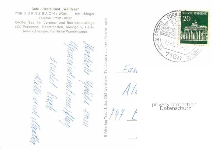 72790763 alte Postkarte Fornsbach Waldsee Zeltplatz Minigolf postalisch gelaufen Erhaltung siehe scans [AndreD76] KatCode: 11110008119044