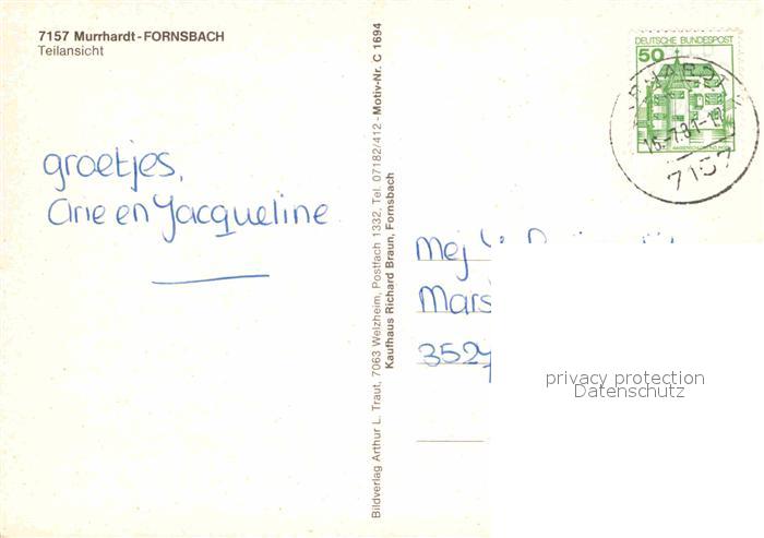 72653707 alte Postkarte Fornsbach postalisch gelaufen Erhaltung siehe scans [LiesaD40] KatCode: 11110008119044