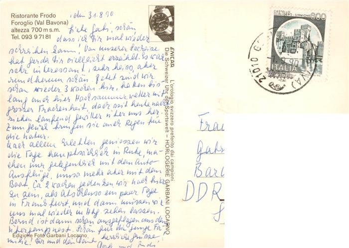 13946985 alte Postkarte Foroglio Val Bavona TI Ristorante Frodo Terrasse postalisch gelaufen Erhaltung siehe scans [FriedD77] KatCode: 11470210665262