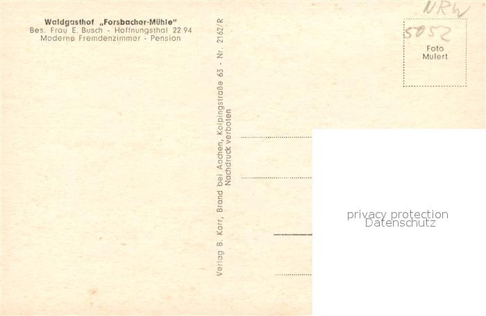 43370669 Forsbach Rheinland Waldgasthof Forsbacher Muehle postalisch nicht gelaufen Erhaltung siehe scans [FriedD77] KatCode: 11110005378028