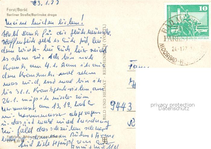 73655783 alte Postkarte Forst Lausitz Berliner Strasse postalisch gelaufen Erhaltung siehe scans [FriedD77] KatCode: 11110012071076