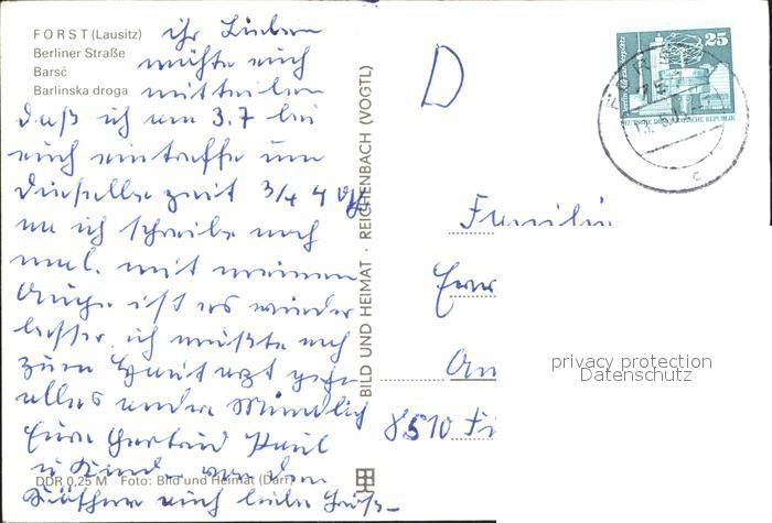72088858 alte Postkarte Forst Lausitz Berliner Strasse postalisch gelaufen Erhaltung siehe scans KatCode: 11110012071076