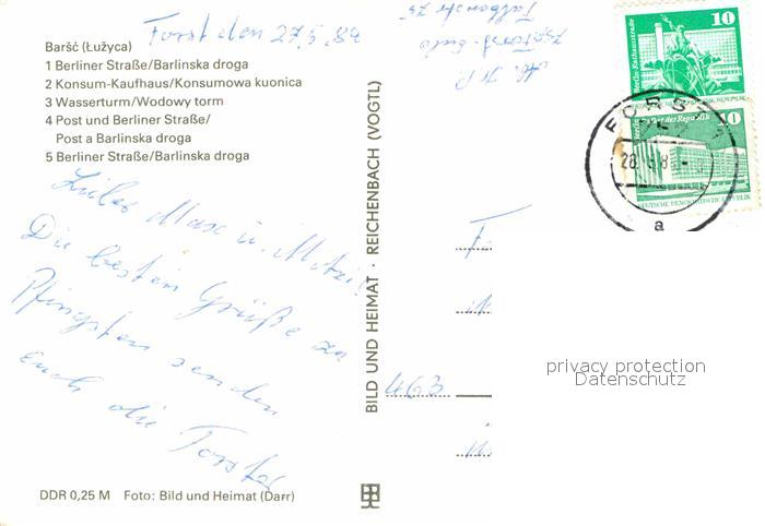 72898714 alte Postkarte Forst Lausitz Berliner Strasse Konsum-Kaufhaus Wasserturm Post postalisch gelaufen Erhaltung siehe scans [PaolaD17] KatCode: 11110012071076