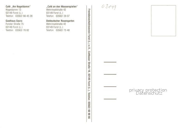 73659621 Forst Lausitz Caf? am Kegeldamm Gasthaus Sacro postalisch nicht gelaufen Erhaltung siehe scans [LiesaD40] KatCode: 11110012071076
