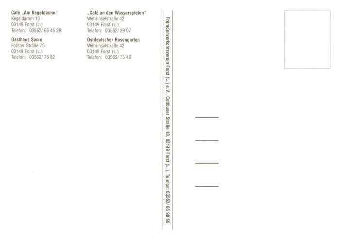 73949826 Forst Lausitz Café Am Kegeldamm Café an den Wasserspielen Gasthaus Sacro Ostdeutscher Rosengarten postalisch nicht gelaufen Erhaltung siehe scans [FriedD77] KatCode: 11110012071076
