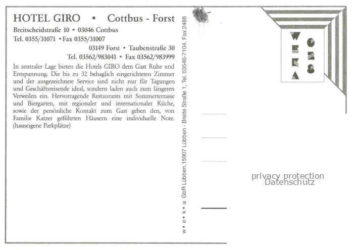 74038031 Forst Lausitz Hotel Giro Forster Rosengarten Spreewald Staatstheater postalisch nicht gelaufen Erhaltung siehe scans [WerneD78] KatCode: 11110012071076