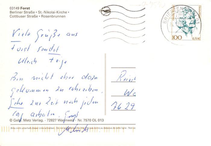 73947354 alte Postkarte Forst Lausitz Rosenstadt Kirche Ortspartien postalisch gelaufen Erhaltung siehe scans [WerneD78] KatCode: 11110012071076