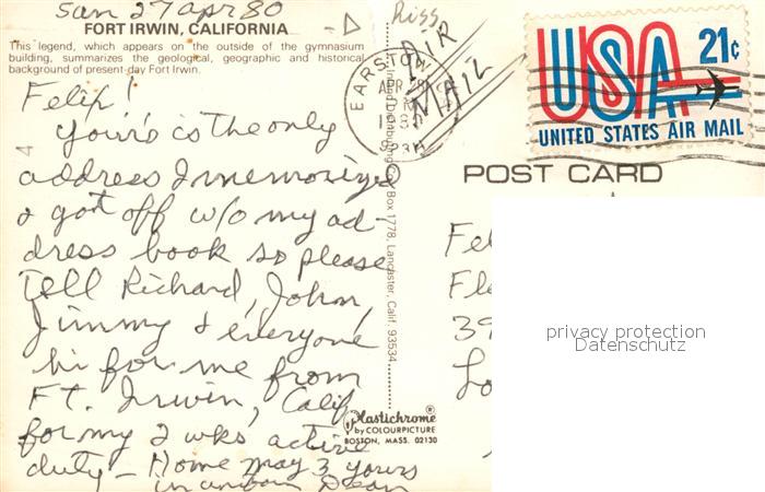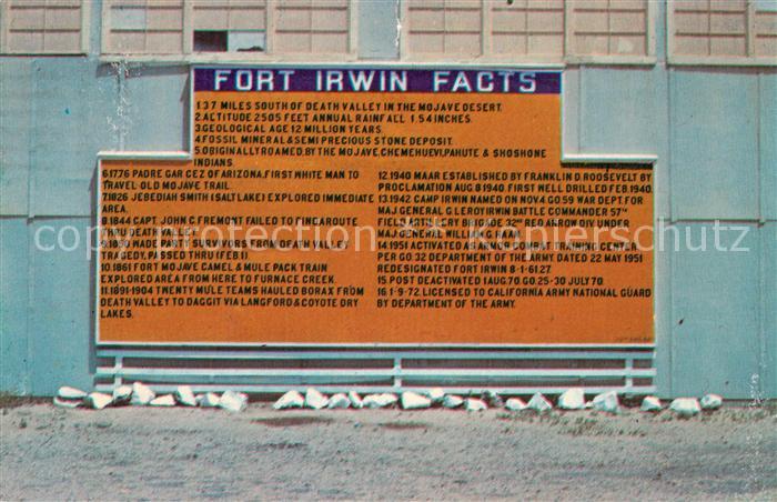 73130030 old postcard Fort Irwin Facts postalisch gelaufen Erhaltung siehe scans [KathaD81] KatCode: 14140050000000