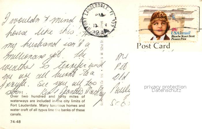 73130345 old postcard Fort Lauderdale postalisch gelaufen Erhaltung siehe scans [NatalD47] KatCode: 14140110000000