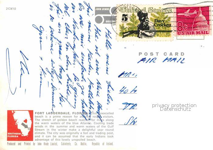 72649285 old postcard Fort Lauderdale Beach Atlantic Ocean postalisch gelaufen Erhaltung siehe scans [FriedD77] KatCode: 14140110000000