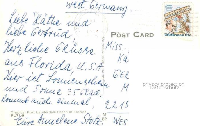 72810825 old postcard Fort Lauderdale Beach postalisch gelaufen Erhaltung siehe scans [WerneD78] KatCode: 14140110000000