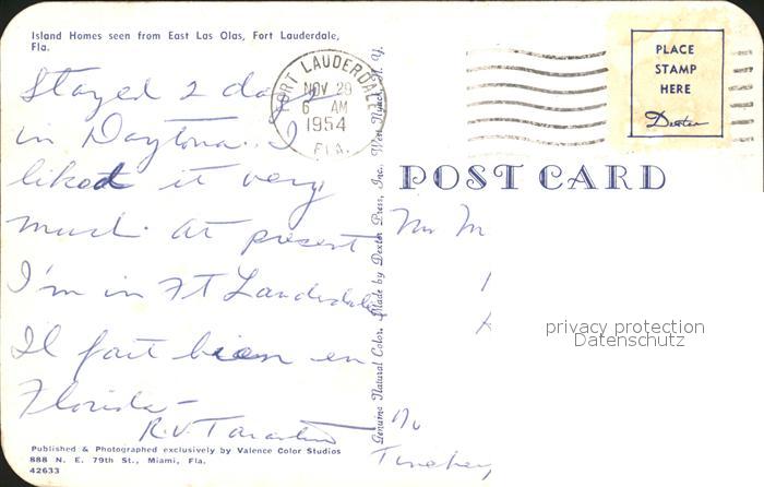 72230870 old postcard Fort Lauderdale East Las Olas postalisch gelaufen Erhaltung siehe scans KatCode: 14140110000000