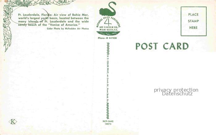 74156091 Fort Lauderdale Florida USA Air view of Bahia Mar Yacht basin Venice of America postalisch nicht gelaufen Fliegeraufnahme Erhaltung siehe scans [FriedD77] KatCode: 14140110000000