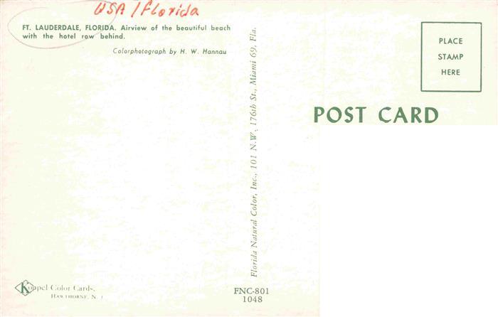 74013811 Fort Lauderdale Florida USA Airview of the beach with the Hotel row behind postalisch nicht gelaufen Erhaltung siehe scans [WerneD78] KatCode: 14140110000000