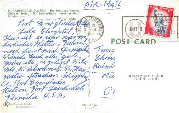 74156093 old postcard Fort Lauderdale Florida USA Fabulous Yankee Clipper Hotel at night postalisch gelaufen Erhaltung siehe scans [FriedD77] KatCode: 14140110000000