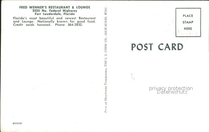 71953334 Fort Lauderdale Fred Wenner`s Restaurant and Lounge postalisch nicht gelaufen Erhaltung siehe scans KatCode: 14140110000000