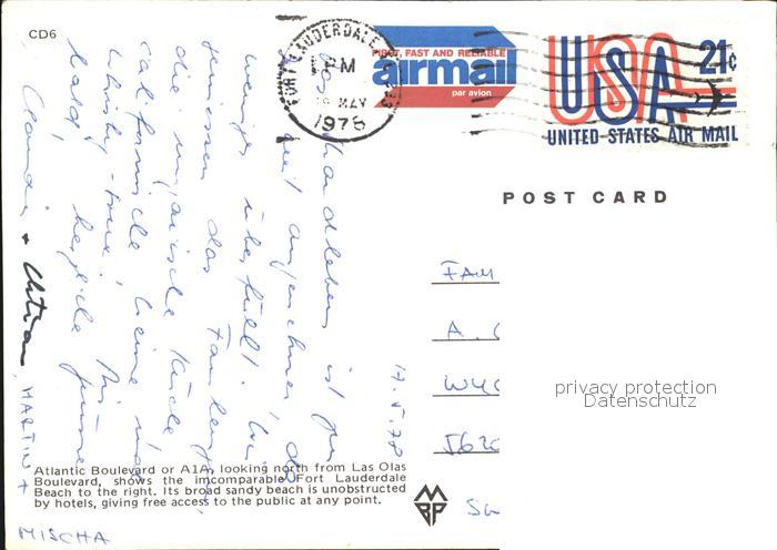 72582812 old postcard Fort Lauderdale Las Olas Boulevard postalisch gelaufen Erhaltung siehe scans [LiesaD40] KatCode: 14140110000000
