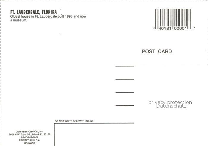 72521541 Fort Lauderdale Oldest House postalisch nicht gelaufen Erhaltung siehe scans KatCode: 14140110000000