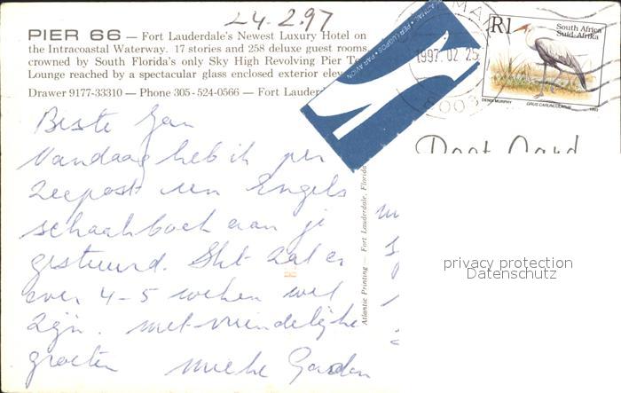 71953332 old postcard Fort Lauderdale Pier 66 postalisch gelaufen Erhaltung siehe scans KatCode: 14140110000000