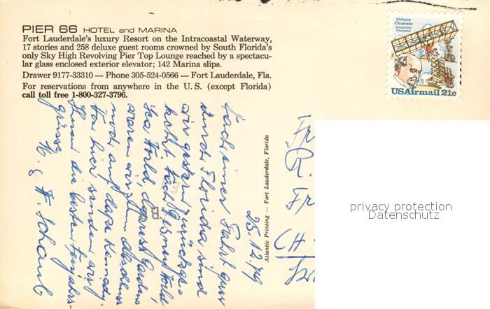 73298683 old postcard Fort Lauderdale Pier 66 Hotel and Marina aerial view postalisch gelaufen Erhaltung siehe scans [FriedD77] KatCode: 14140110000000