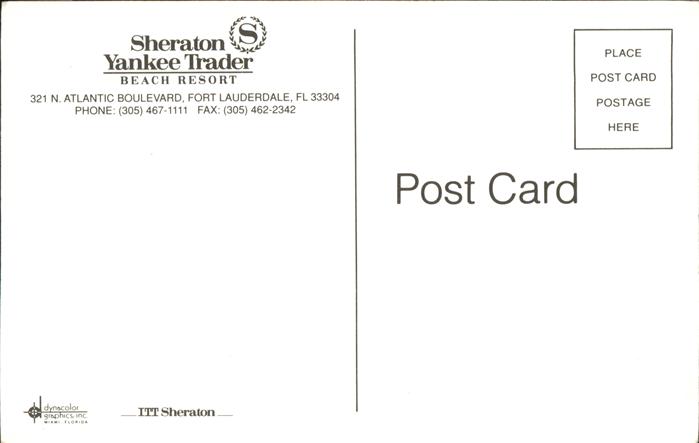 11491775 Fort Lauderdale Sheraton Yankee Trader Beach Resort postalisch nicht gelaufen Erhaltung siehe scans KatCode: 14140110000000