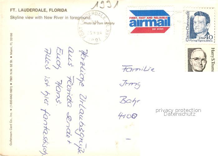 72929582 old postcard Fort Lauderdale Skyline with New River Segelboot postalisch gelaufen Erhaltung siehe scans [LiesaD40] KatCode: 14140110000000