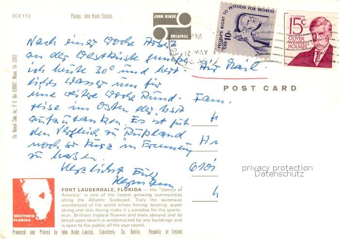 73259923 old postcard Fort Lauderdale postalisch gelaufen Erhaltung siehe scans [NatalD47] KatCode: 14140110000000