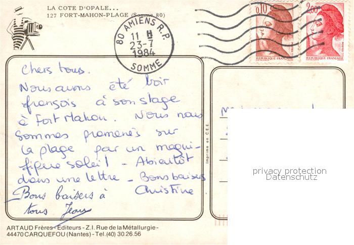 13579013 carte postale Fort-Mahon-Plage Strand Windsurfen Fischen Sonnenuntergang Fliegeraufnahme postalisch gelaufen Erhaltung siehe scans [FriedD77] KatCode: 11170080180333